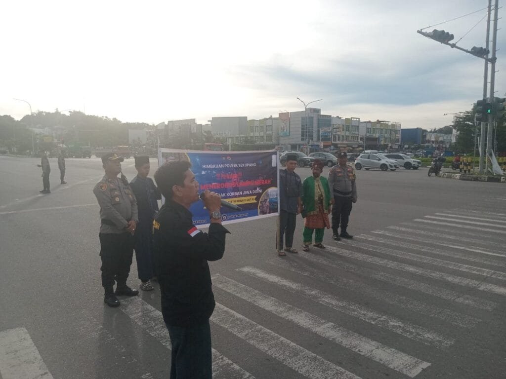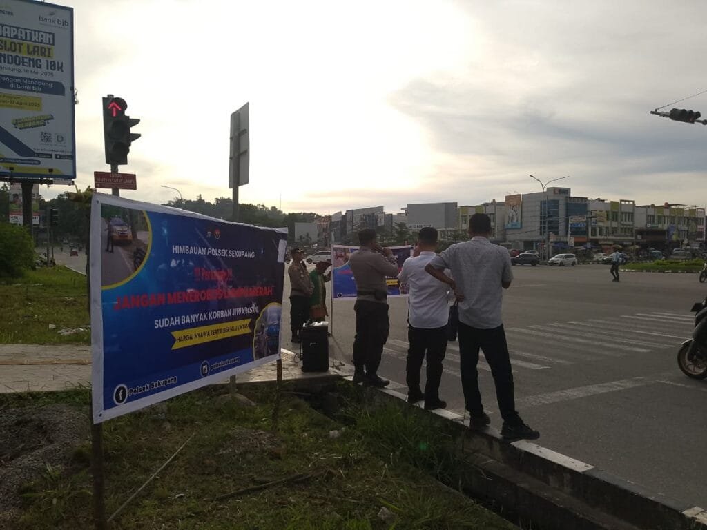 Tak hanya pemasangan spanduk, Kapolsek dan para tokoh masyarakat juga melakukan imbauan langsung kepada para pengendara yang sedang berhenti di lampu merah. Dengan menggunakan pengeras suara, mereka menyampaikan pesan-pesan penting tentang keselamatan berkendara, termasuk pentingnya mematuhi rambu lalu lintas, memakai helm, dan tidak berkendara ugal-ugalan.